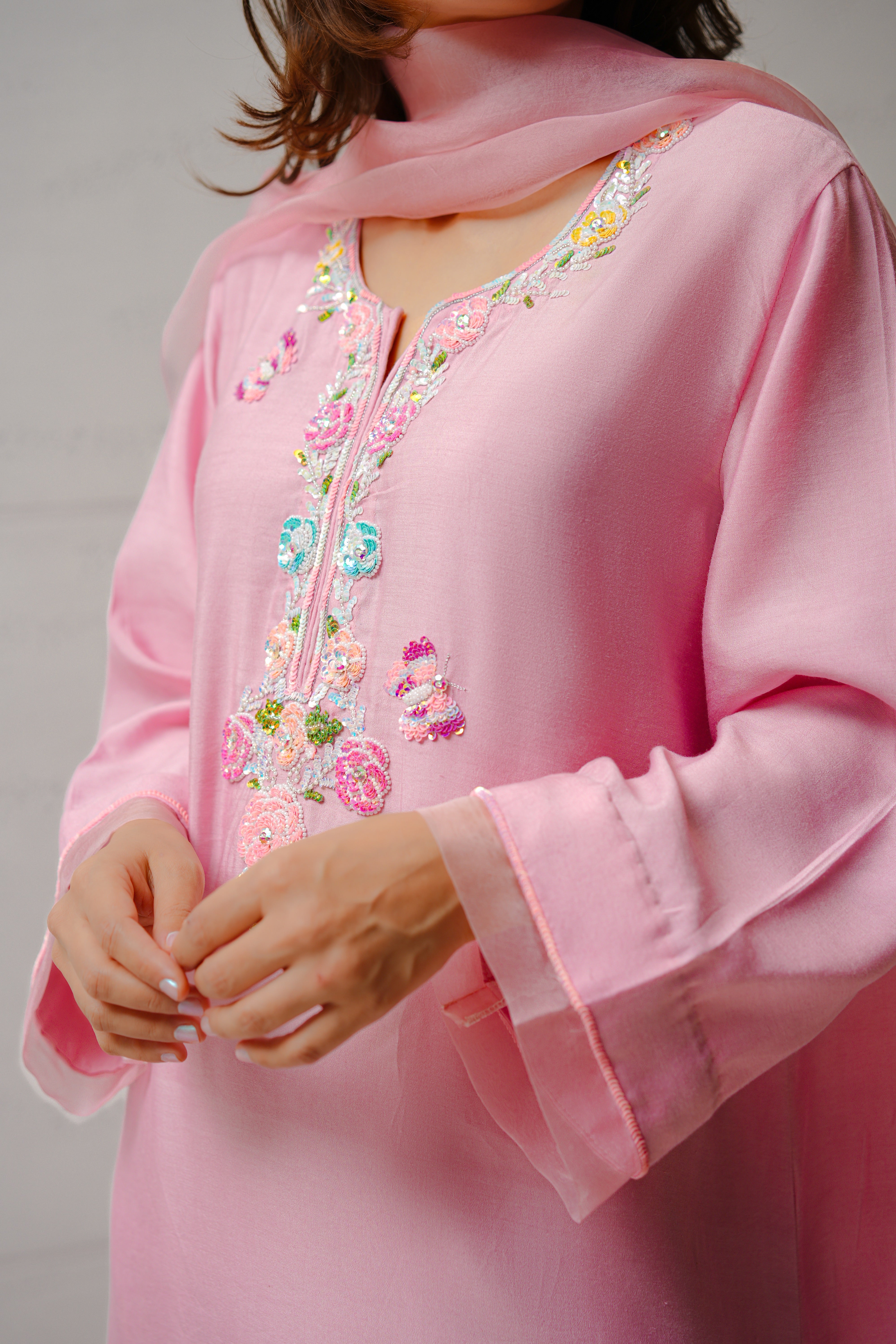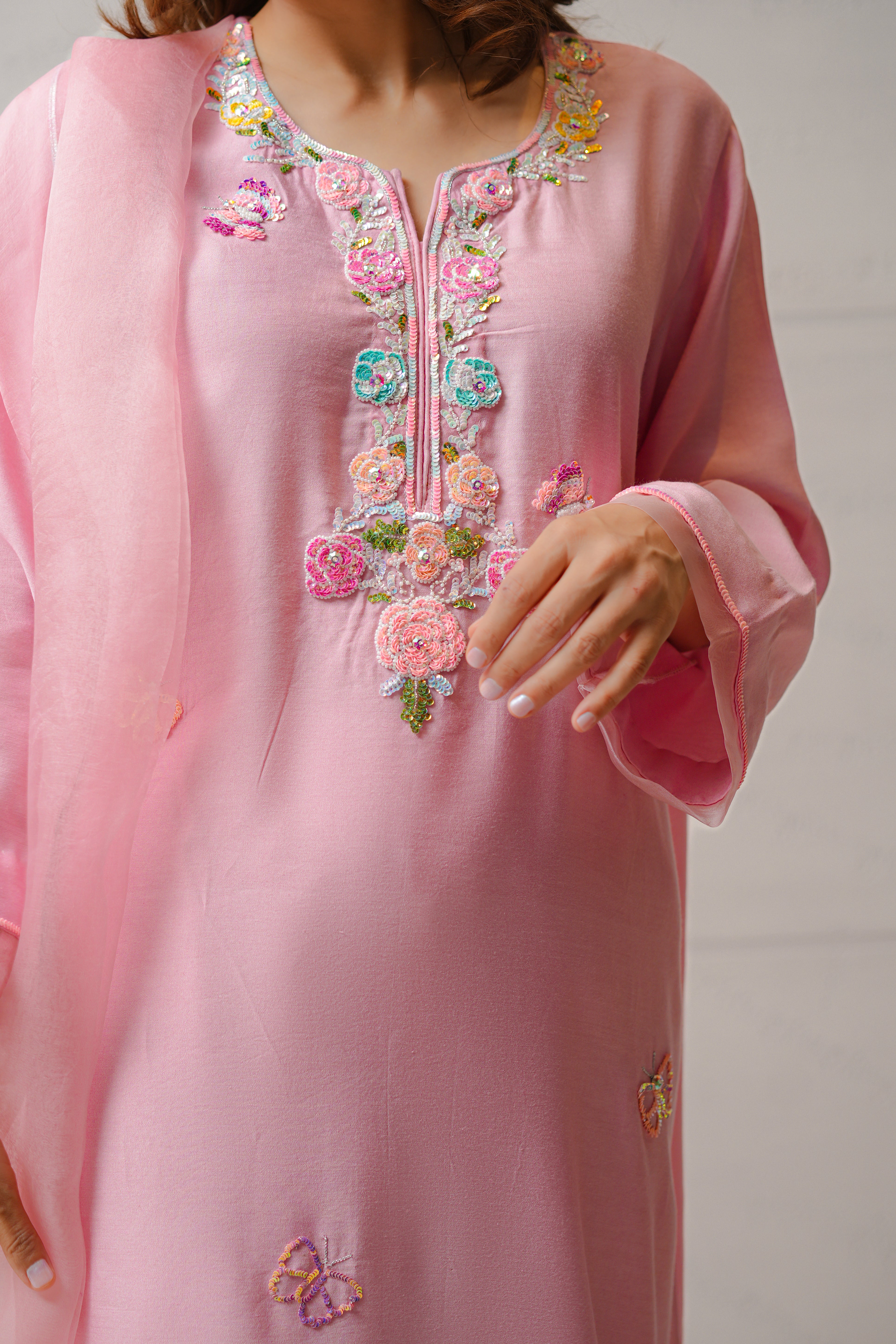 Product Disclaimer: While we make every effort to accurately represent the colors and textures of our garments, please note that variations may occur due to screen settings, lighting, and photography. The actual product color may slightly differ from what appears on your device. As each piece is crafted using delicate, breathable materials and often handembellished, minor irregularities in texture or detail are part of the garment's unique character. We recommend reviewing care instructions carefully to preserve the longevity and beauty of your piece.